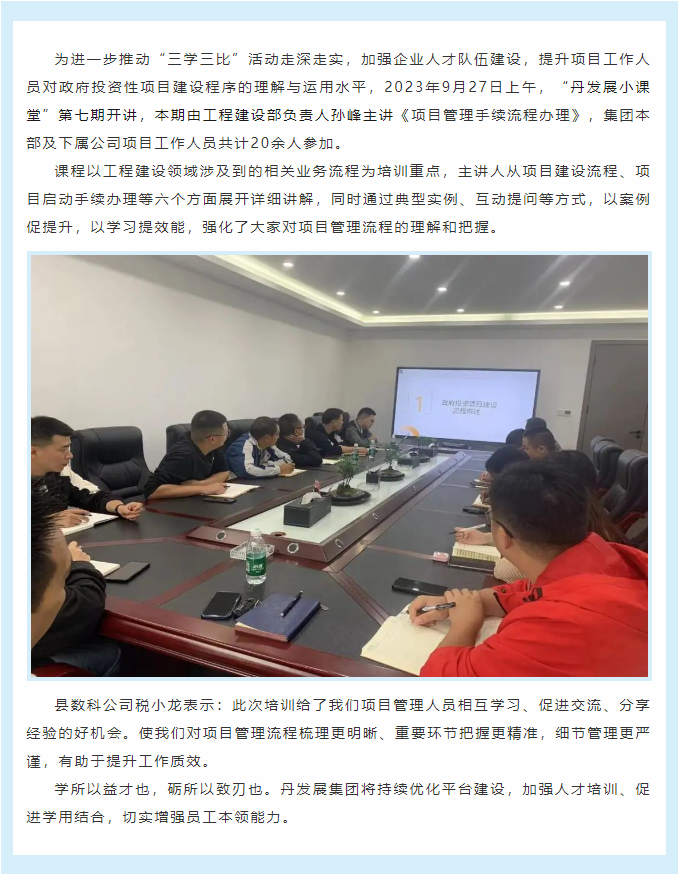 交流賦能成長(cháng) 夯實(shí)項目品質(zhì)——丹發(fā)展小課堂第七期開(kāi)講啦!