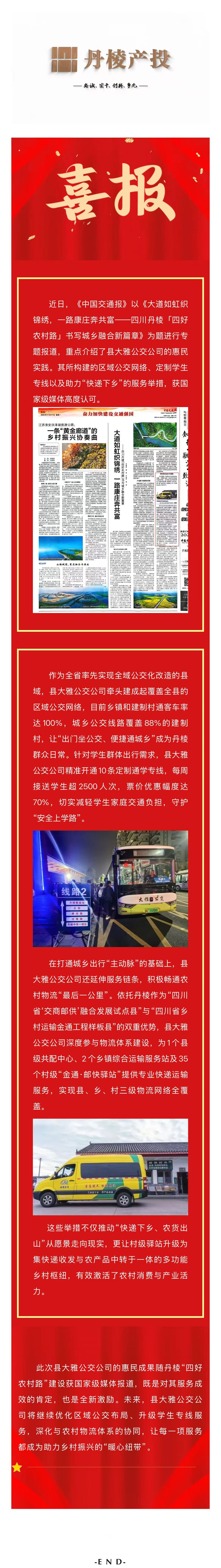 【縣交投公司】喜報!丹棱大雅公交惠民實(shí)踐登《中國交通報》,區域公交、學(xué)生專(zhuān)線(xiàn)與快遞下鄉織密幸福網(wǎng)