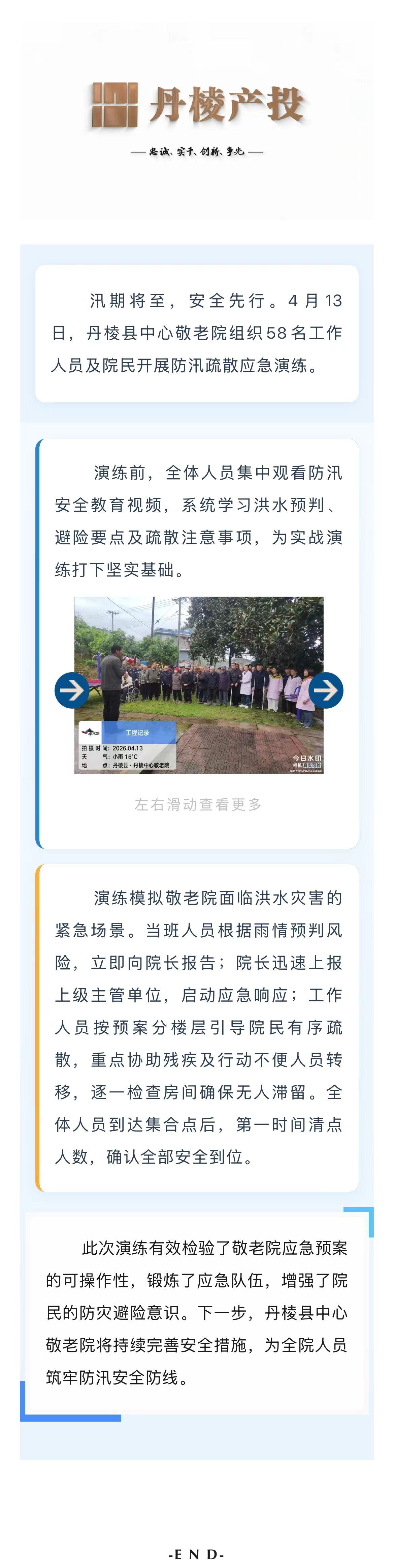 【縣城投公司】丹棱縣中心敬老院開(kāi)展防汛疏散應(yīng)急演練