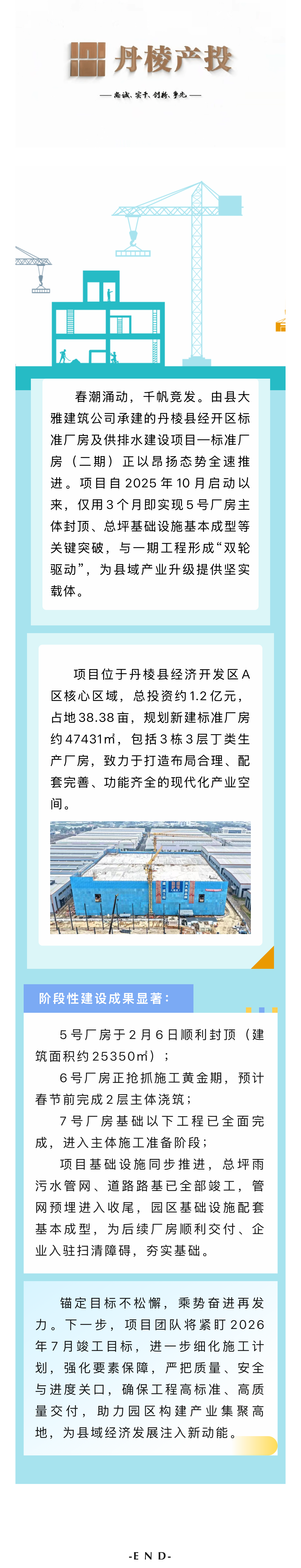 【縣大雅建筑公司】筑跡:乘勢而上再提速 丹棱縣經(jīng)開區(qū)標準廠房及供排水建設(shè)項目—標準廠房(二期)全面攻堅​