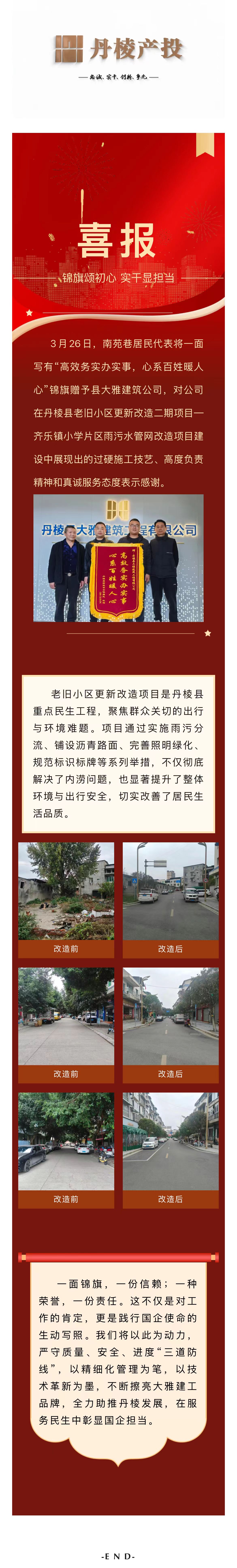 【縣大雅建筑公司】錦旗頌初心 實(shí)干顯擔(dān)當(dāng)